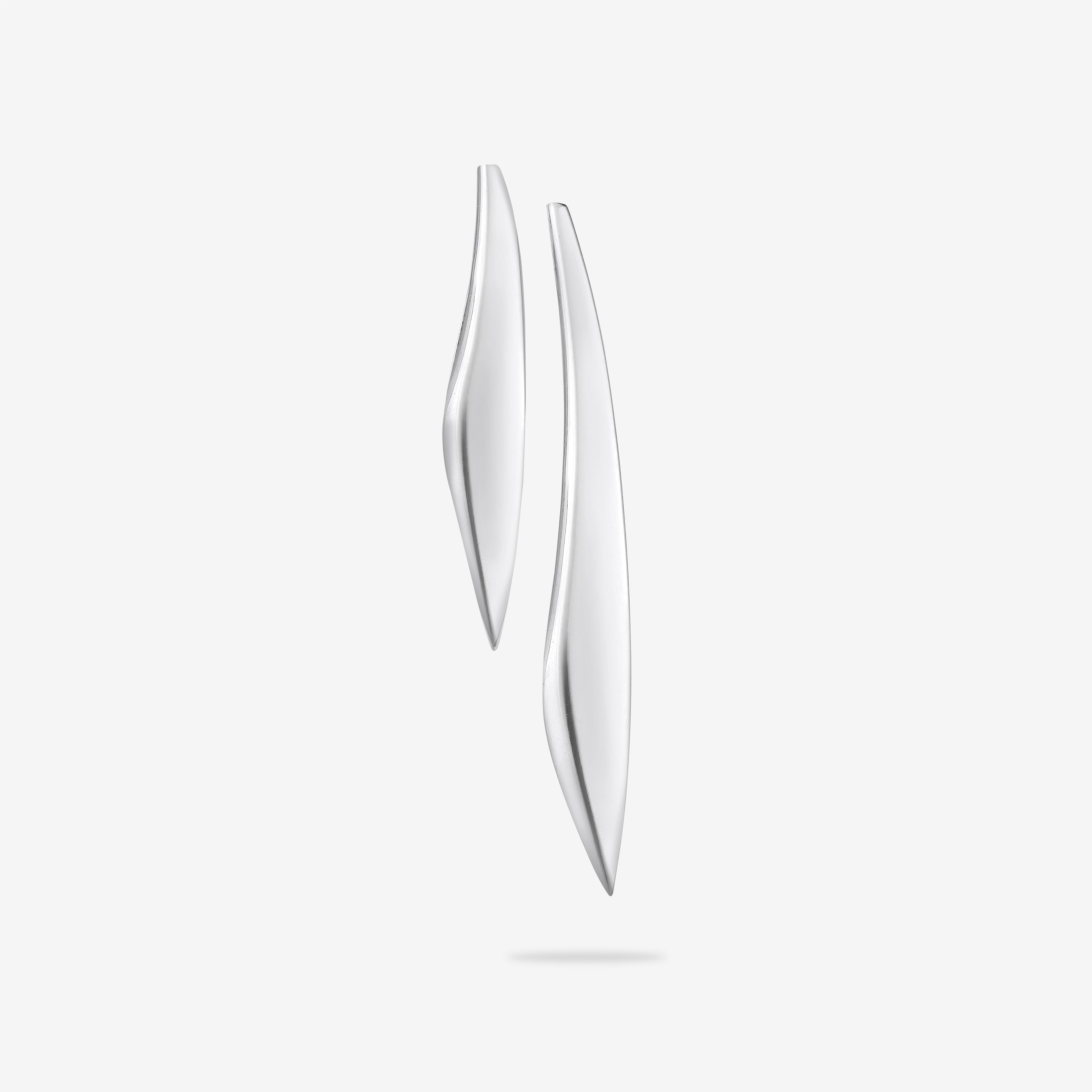 The Phase Earrings are crafted from recycled 18ct gold in an elongated, sculptural tapered form. Finished in a high polish. They form the larger bottom drop in the stacked earrings pictured.